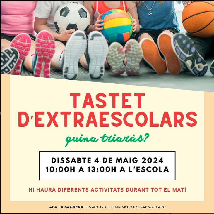Amb molta il·lusió i esforç, la comissió d’extraescolars de l’AFA de l’Escola La Sagrera ha preparat aquest recull d’activitats.
